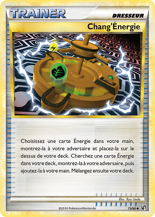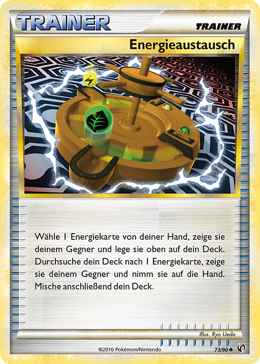 Elige una carta de Energía de tu mano, enséñasela a tu rival y ponla en la parte superior de tu mazo. Busca en tu mazo una carta de Energía, enséñasela a tu rival y ponla en tu mano. Baraja tu mazo después.
