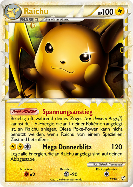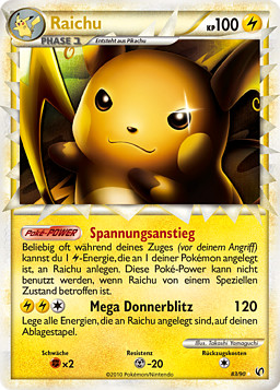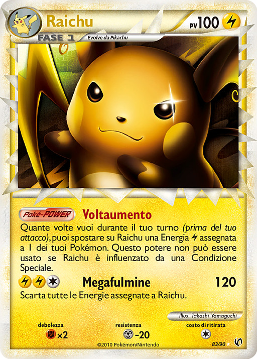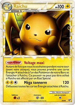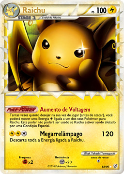 Todas las veces que quieras durante tu turno (antes de tu ataque), puedes mover una carta de Energía unida a 1 de tus Pokémon a Raichu. Este poder no se puede usar si Raichu se ve afectado por una Condición Especial.