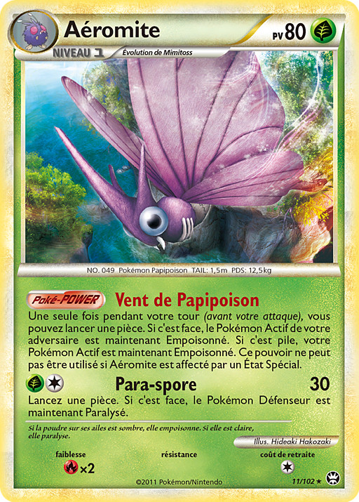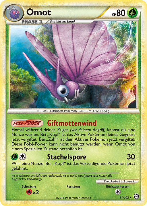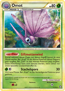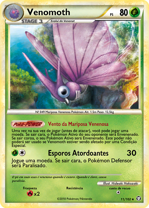 Una vez durante tu turno (antes de tu ataque), puedes lanzar una moneda. Si sale cara, el Pokémon Activo de tu rival quedará Envenenado. Si sale cruz, tu Pokémon Activo quedará Envenenado. Este poder no se puede usar si Venomoth está afectada por alguna C