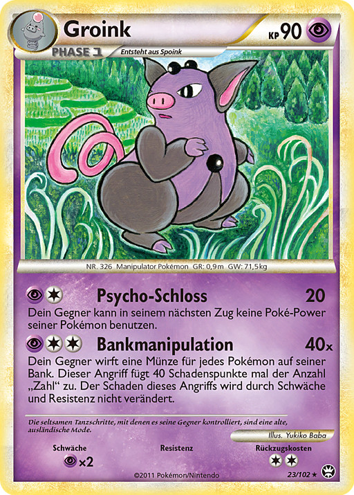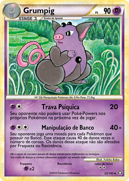 Tu rival lanzará una moneda por cada uno de sus Pokémon en Banca. Este ataque causa 40 puntos de daño por cada cruz. El daño de este ataque no se ve afectado por Debilidad o Resistencia.