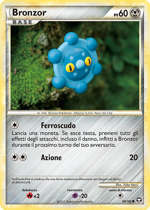 Lanza una moneda. Si sale cara, previene de todos los efectos de los ataques, incluido el daño infligido a Bronzor durante el próximo turno de tu rival.