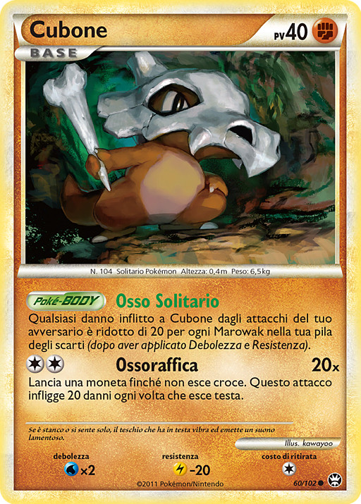Los daños causados a Cubone por los ataques de tu rival se reducirán en 20 por cada Marowak que tengas en tu pila de descarte (después de aplicar Debilidad y Resistencia).