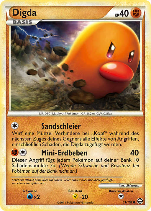 Lanza una moneda. Si sale cara, previene de todos los efectos de los ataques, incluido el daño infligido a Diglett durante el próximo turno de tu rival.