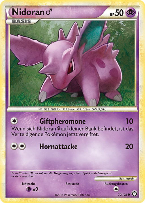 Pokémon Básico (50 HP) -Ataque de cuerno 20 -Veneno feromona 10