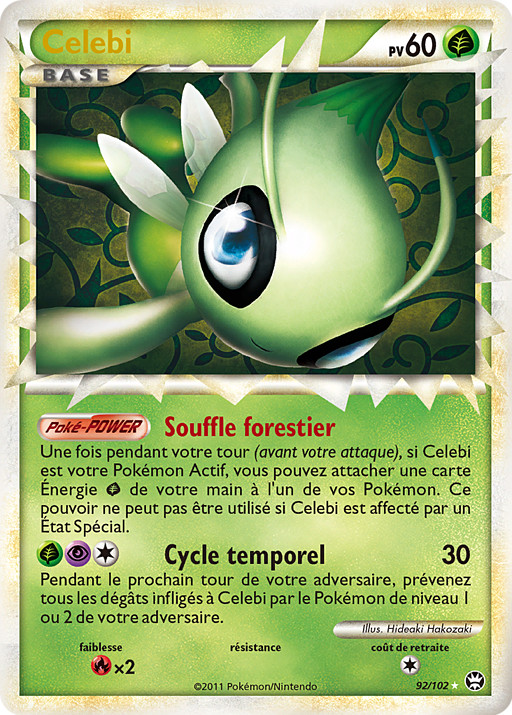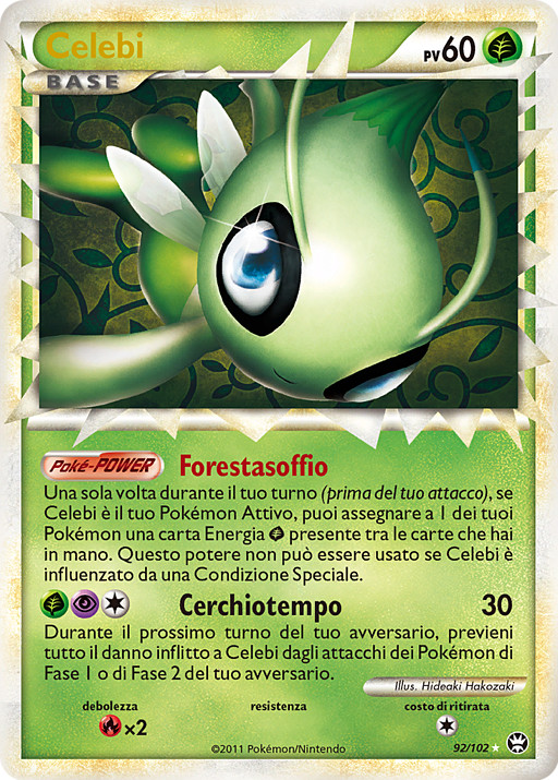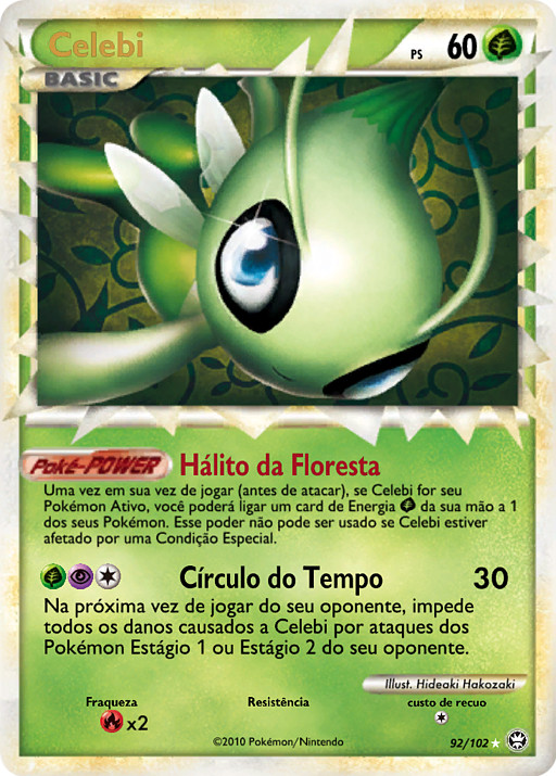 Una vez durante tu turno (antes de tu ataque), si Celebi es tu Pokémon Activo, podrás unir una carta de Energía de tu mano a 1 de tus Pokémon. Este poder no se puede usar si Celebi está afectado por alguna Condición Especial.