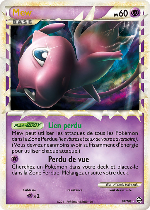 Mew puede usar los ataques de todos los Pokémon de la Zona Perdida (tanto tuyos como de tu rival). (Sigues necesitando la Energía necesaria para usar cada ataque.)