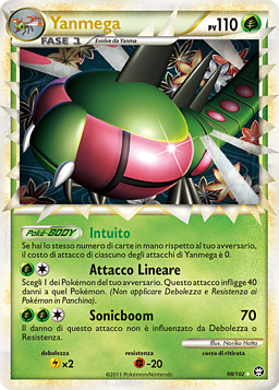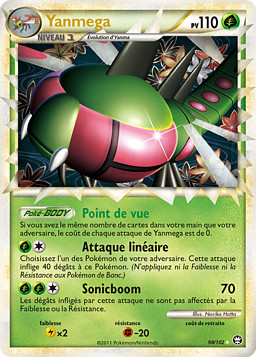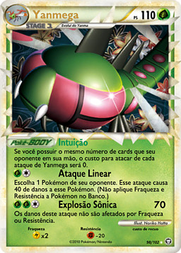 Si tienes el mismo número de cartas en mano que tu rival, el coste de cada uno de los ataques de Yanmega será de cero.