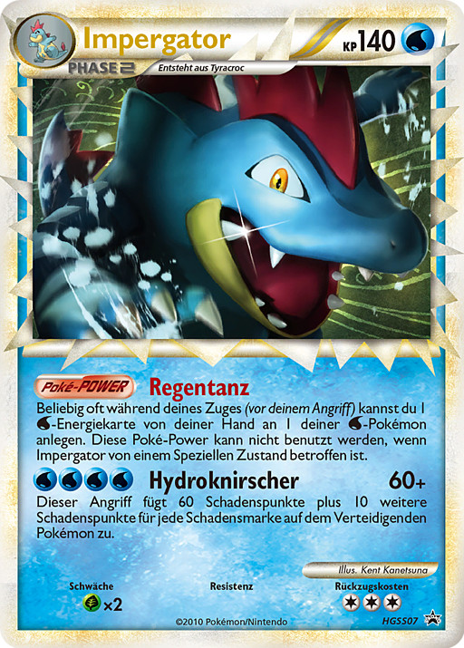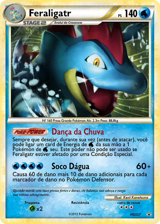Todas las veces que quieras durante tu turno (antes de tu ataque), puedes unir una carta de Energía de tu mano a 1 de tus Pokémon . Este poder no se puede usar si Feraligatr se ve afectado por una Condición Especial.