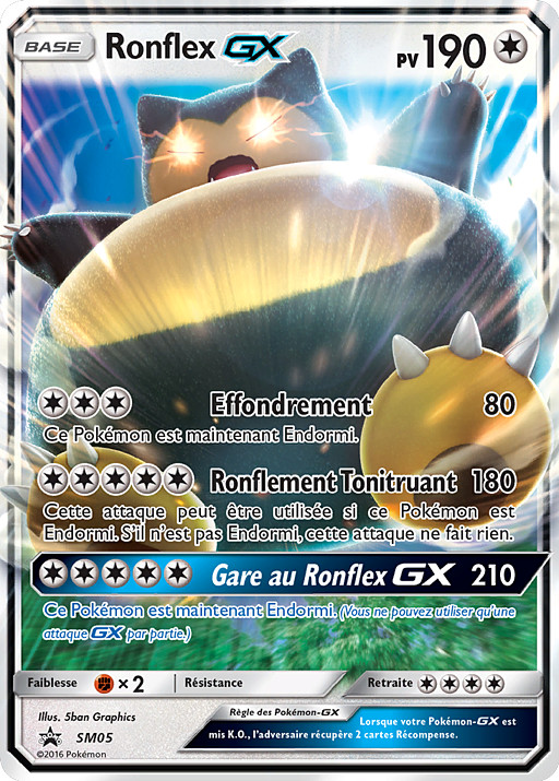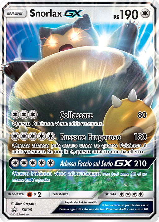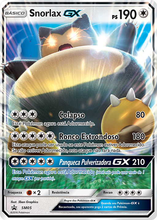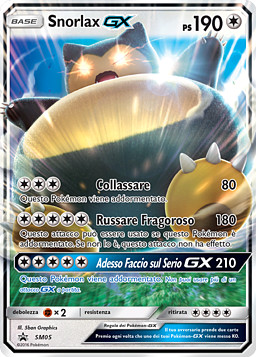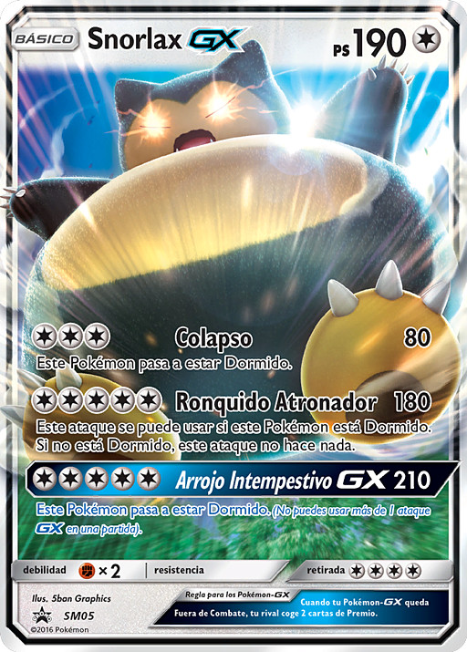 Pokémon Básico (190 HP) -Colapso 80 -Ronquido Atronador 180 -Arrojo Intempestivo GX 210