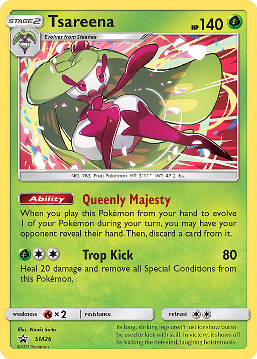 Cuando juegues este Pokémon de tu mano para hacer evolucionar a 1 de tus Pokémon durante tu turno, puedes hacer que tu rival enseñe las cartas de su mano. Después, descarta 1 de sus cartas.
