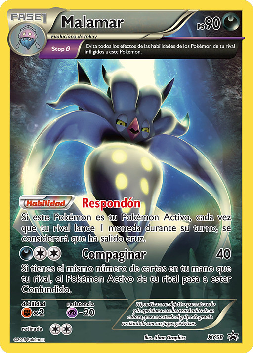 Si este Pokémon es tu Pokémon Activo, cada vez que tu rival lance 1 moneda durante su turno, se considerará que ha salido cruz.