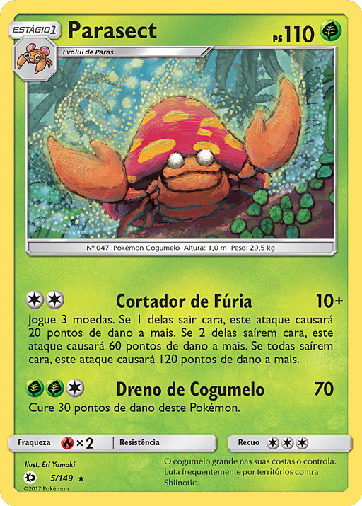Lanza 3 monedas. Si sale cara en 1 de ellas, este ataque hace 20 puntos de daño más. Si sale cara en 2, hace 60 puntos de daño más. Si sale cara en las 3, hace 120 puntos de daño más.
