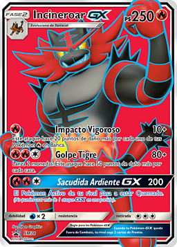Pokémon en Fase 2 (250 HP) -Impacto Vigoroso 10+ -Golpe Tigre 80+ -Sacudida Ardiente GX 200