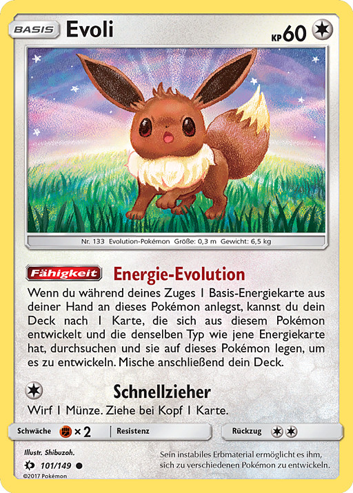 Cuando unas 1 carta de Energía Básica de tu mano a este Pokémon, puedes buscar en tu baraja 1 carta que evolucione de este Pokémon y que sea del mismo tipo que esa carta de Energía y puedes ponerla sobre este Pokémon. (Esto equivale a hacer evolucionar a