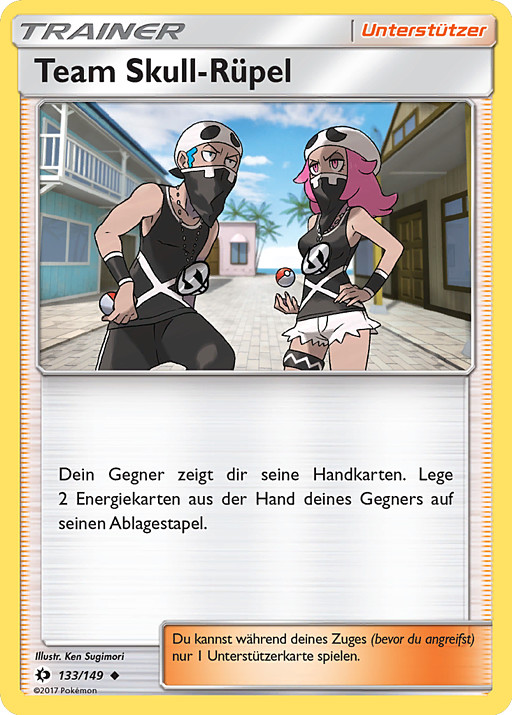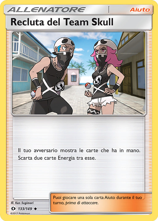 Tu rival enseña las cartas de su mano. Descarta 2 de sus cartas de Energía.