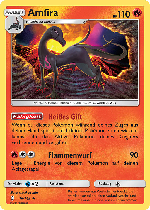 Cuando juegues este Pokémon de tu mano para hacer evolucionar a 1 de tus Pokémon durante tu turno, puedes dejar al Pokémon Activo de tu rival Envenenado y Quemado.