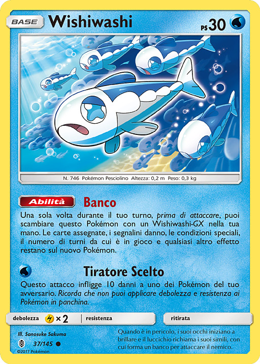 Una vez durante tu turno (antes de tu ataque), puedes cambiar este Pokémon por un Wishiwashi GX de tu mano. Todas las cartas unidas a este Pokémon, los contadores de daño, las Condiciones Especiales, los turnos de juego y todos los demás efectos permanece