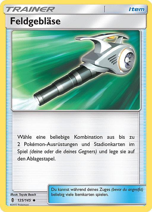 Elige, en cualquier combinación, hasta 2 cartas de Herramienta Pokémon y cartas de Estadio en juego (tuyas o de tu rival) y descártalas.