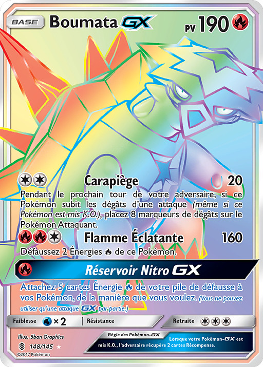 Une 5 cartas de Energía de tu pila de descartes a tus Pokémon de la manera que desees. (No puedes usar más de 1 ataque GX en una partida).