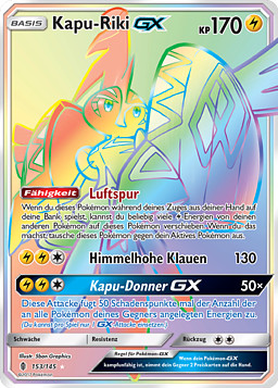 Este ataque hace 50 puntos de daño por cada Energía unida a todos los Pokémon de tu rival. (No puedes usar más de 1 ataque GX en una partida).