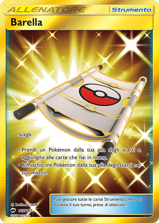 Elige 1 opción:• Pon 1 Pokémon de tu pila de descartes en tu mano.• Pon 3 Pokémon de tu pila de descartes en tu baraja y baraja todas las cartas.
