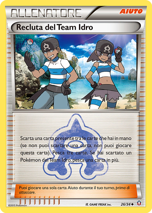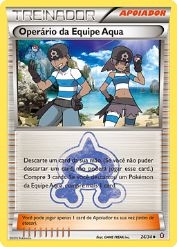 Descarta 1 carta de tu mano. (Si no descartas 1 carta, no puedes jugar esta carta). Roba 3 cartas. Si has descartado 1 Pokémon del Equipo Aqua, roba 1 carta más.