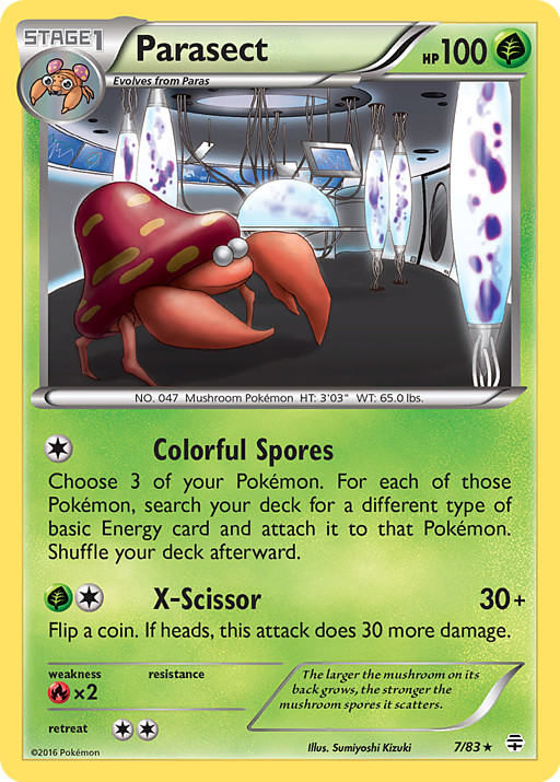 Elige 3 de tus Pokémon. Para cada uno de esos Pokémon, busca en tu baraja 1 carta de Energía Básica de tipo diferente y únela a ese Pokémon. Baraja las cartas de tu baraja después.