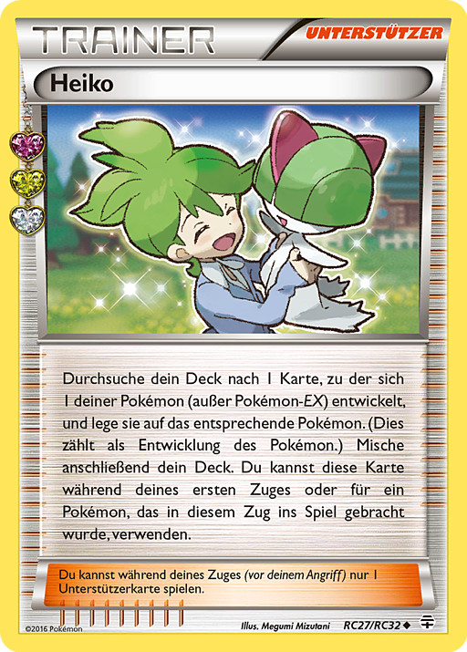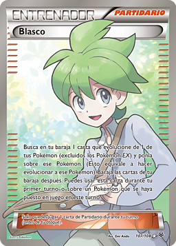 Busca en tu baraja 1 carta que evolucione de 1 de tus Pokémon (excluidos los Pokémon-EX) y ponla sobre ese Pokémon. (Esto equivale a hacer evolucionar a ese Pokémon). Baraja las cartas de tu baraja después. Puedes usar esta carta durante tu primer turno o sobre un Pokémon que se haya puesto en juego en este turno.