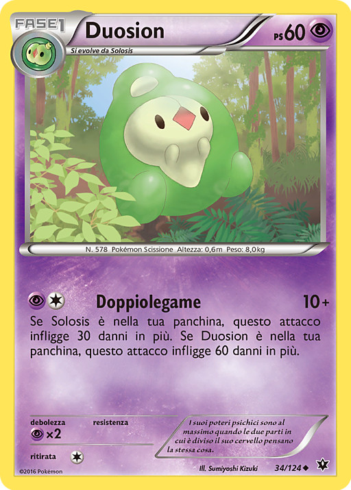 Si Solosis está en tu Banca, este ataque hace 30 puntos de daño más. Si Duosion está en tu Banca, este ataque hace 60 puntos de daño más.