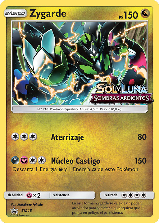El Zygarde-EX al que esté unida esta carta también puede usar el ataque de esta carta. (Sigues necesitando la Energía necesaria para usar este ataque).Quemadura Multicelular 200Descarta 3 Energías unidas a este Pokémon.