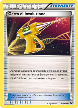 Involuciona a 1 de tus Pokémon evolucionados y pon la carta de Evolución de fase más alta que tenga sobre él en tu mano. (Ese Pokémon no puede evolucionar en este turno).