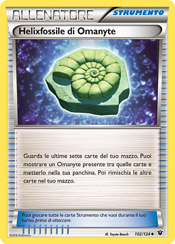 Mira las 7 últimas cartas de tu baraja. Puedes enseñar 1 Omanyte que encuentres entre ellas y ponerlo en tu Banca. Pon el resto de cartas de nuevo en tu baraja y barájalas todas.
