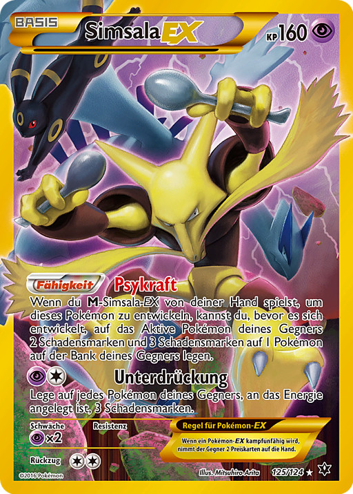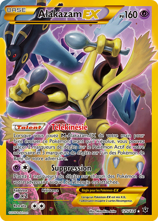 Cuando juegues a M-Alakazam-EX de tu mano para hacer evolucionar a este Pokémon, antes de que evolucione, puedes poner 2 contadores de daño en el Pokémon Activo de tu rival y 3 contadores de daño en 1 de los Pokémon en Banca de tu rival.