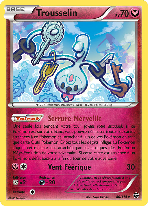 Una vez durante tu turno (antes de tu ataque), si este Pokémon está en tu Banca, puedes descartar todas las cartas unidas a este Pokémon y unirlo a 1 de tus Pokémon como una carta de Herramienta Pokémon. Evita cualquier daño infligido al Pokémon al que es