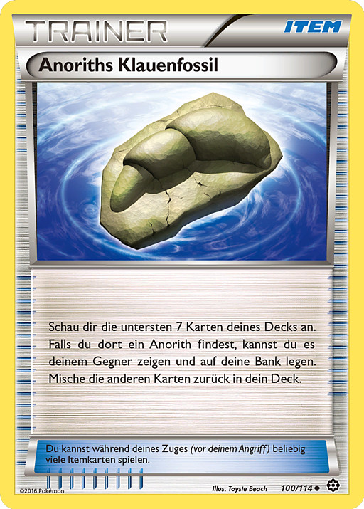 Mira las 7 últimas cartas de tu baraja. Puedes enseñar 1 Anorith que encuentres entre ellas y ponerlo en tu Banca. Pon el resto de cartas de nuevo en tu baraja y barájalas todas.