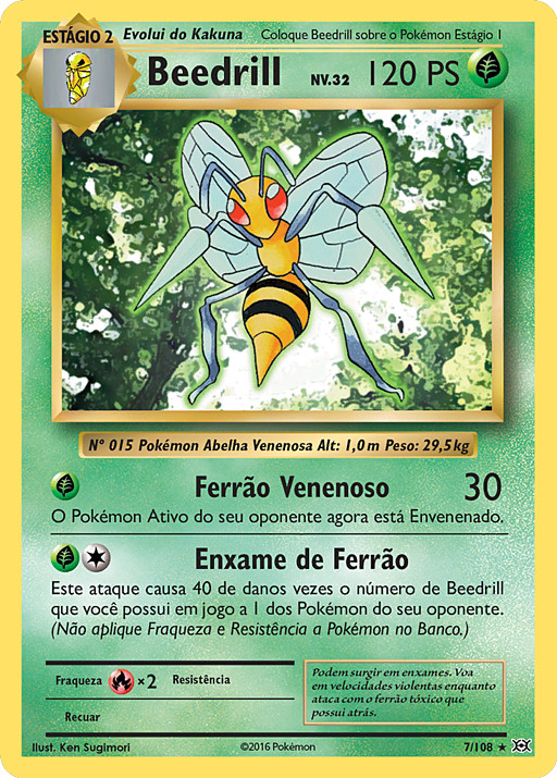 Este ataque hace 40 puntos de daño por cada Beedrill que tengas en juego a 1 de los Pokémon de tu rival. (No apliques Debilidad y Resistencia a los Pokémon en Banca).