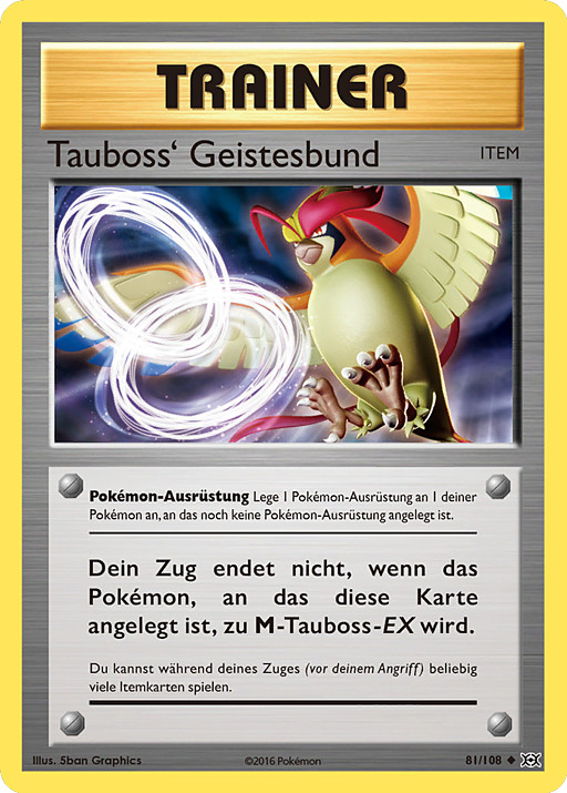 Tu turno no termina si el Pokémon al que está unida esta carta se convierte en M-Pidgeot-EX.