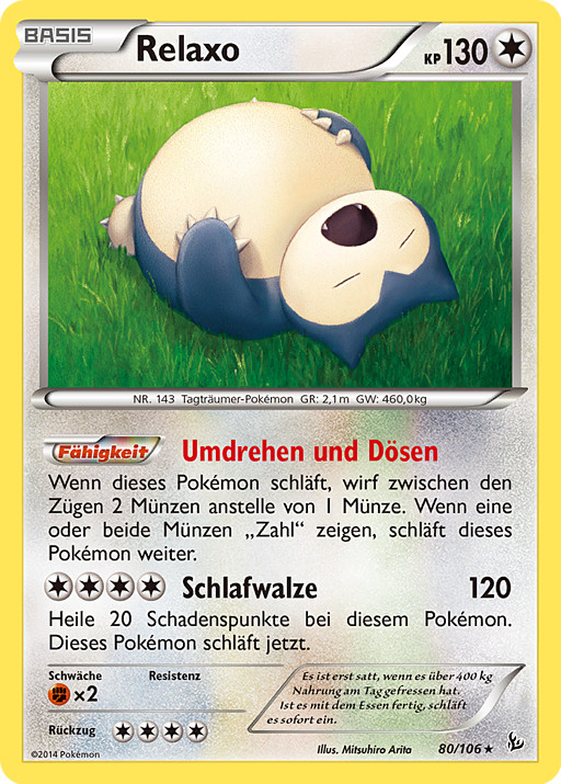 Si este Pokémon está Dormido, lanza 2 monedas en vez de 1 entre turnos. Si sale cruz en alguna de ellas, este Pokémon está todavía Dormido.