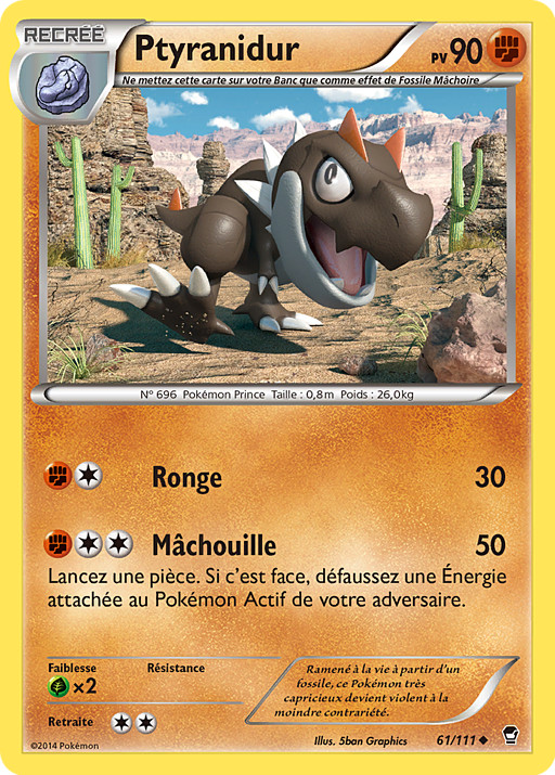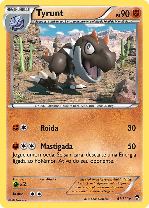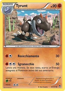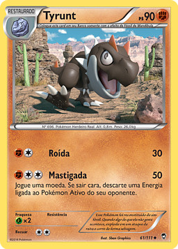 Mira las 7 últimas cartas de tu baraja. Puedes enseñar un Tyrunt que encuentres entre ellas y ponerlo en tu Banca. Pon el resto de cartas de nuevo en tu baraja y barájalas todas.