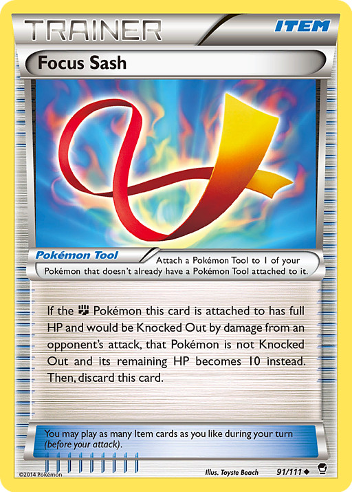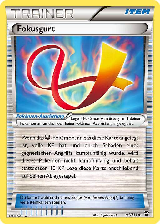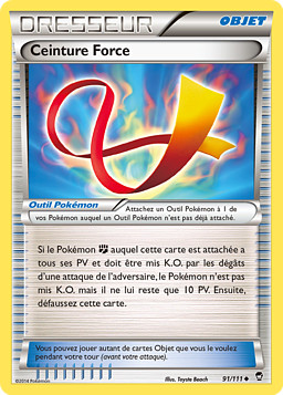 Si el Pokémon al que esté unida esta carta tiene todos sus PS y fuese a quedar Fuera de Combate por el daño de un ataque del rival, ese Pokémon no queda Fuera de Combate y sus PS restantes pasan a ser 10. Después, descarta esta carta.