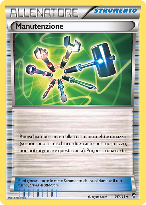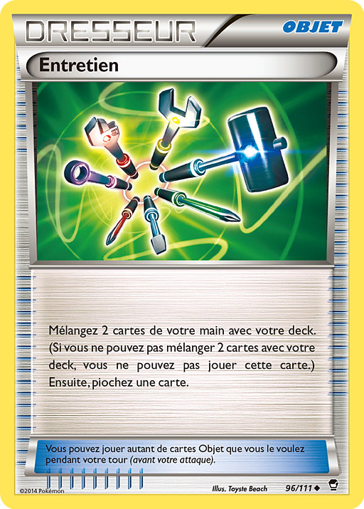 Pon 2 cartas de tu mano en tu baraja y barájalas todas. (Si no puedes poner 2 cartas, no puedes jugar esta carta). Después, roba 1 carta.