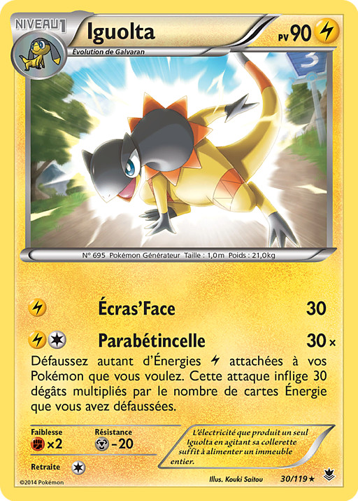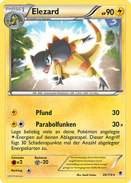 Descarta tantas Energías unidas a tus Pokémon como quieras. Este ataque hace 30 puntos de daño por cada carta de Energía que hayas descartado.