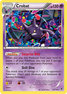 Cuando juegues este Pokémon de tu mano para hacer evolucionar a 1 de tus Pokémon, puedes poner 3 contadores de daño en 1 de los Pokémon de tu rival.