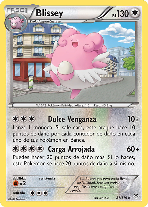 Lanza 1 moneda. Si sale cara, este ataque hace 10 puntos de daño por cada contador de daño en cada uno de tus Pokémon en Banca.