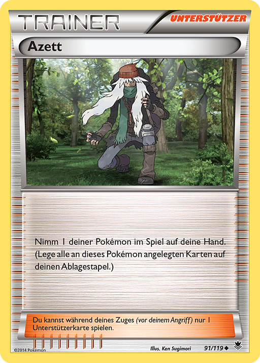 Pon 1 de tus Pokémon en juego en tu mano. (Descarta todas las cartas unidas a ese Pokémon).