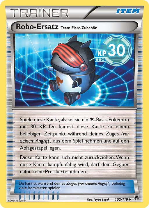 Juega esta carta como si fuera un Pokémon Básico de 30 PS. En cualquier momento durante tu turno (antes de tu ataque), puedes descartar esta carta del juego. Esta carta no puede retirarse. Si esta carta queda Fuera de Combate, tu rival no puede coger ninguna carta de Premio por ella.