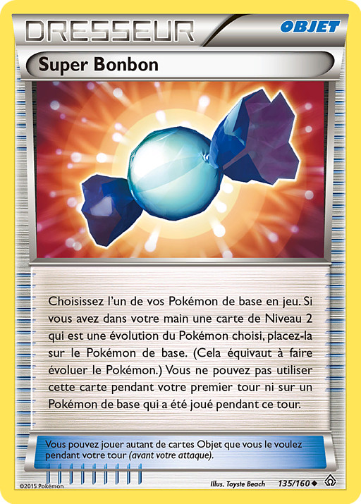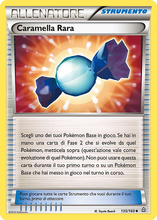 Elige a 1 de tus Pokémon Básicos en juego. Si tienes en tu mano una carta de Fase 2 que evolucione de ese Pokémon, pon esa carta sobre el Pokémon Básico. (Esto equivale a hacer evolucionar a ese Pokémon.) No puedes usar esta carta durante tu primer turno o sobre un Pokémon Básico que se haya puesto en juego en este turno.