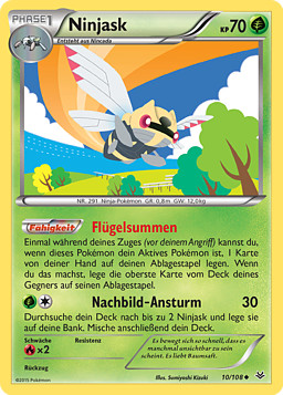 Busca en tu baraja hasta 2 Ninjask y ponlos en tu Banca. Baraja las cartas de tu baraja después.