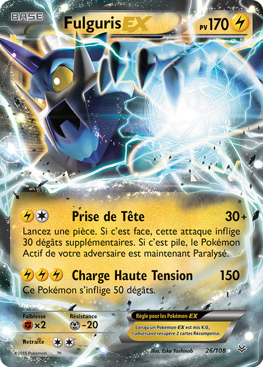 Lanza 1 moneda. Si sale cara, este ataque hace 30 puntos de daño más. Si sale cruz, el Pokémon Activo de tu rival pasa a estar Paralizado.