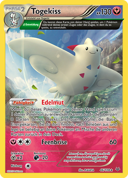 Cuando juegues este Pokémon de tu mano para hacer evolucionar a 1 de tus Pokémon, puedes mirar las 8 primeras cartas de tu baraja. Elige las cartas de Energía Básica que encuentres entre ellas y únelas a tus Pokémon de la manera que desees. Pon el resto d